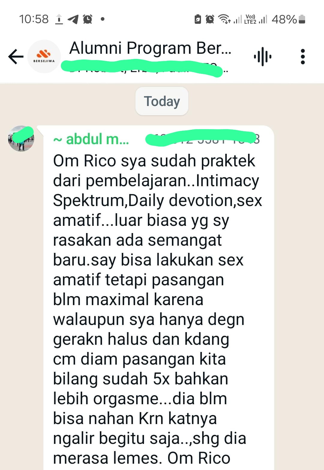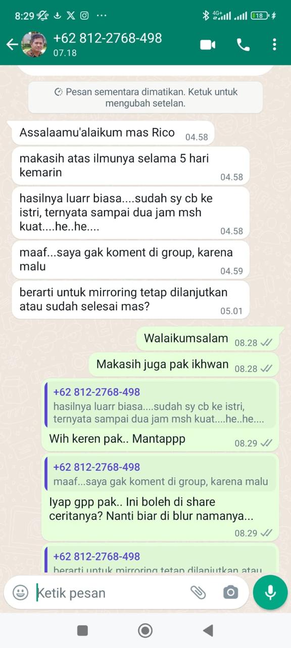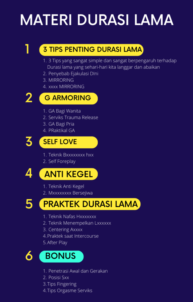 Cukup praktek 15 menit sehari dan ikuti panduannya dalam 7 -14 hari secara progresif kamu mulai mengalami peningkatan kesadarans aat berhubungan..efeknya Durasi jauh meningkat dan Orgasme lebih intens serasa bergetar seluruh tubuh dan siap berkali-kali..