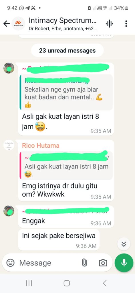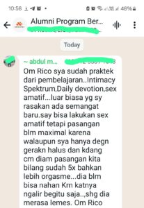 Saya pernah ketemu dengan Pebisnis MLM yang sudah mencoba berbagai jenis OBAT KUAT, beliau bilang gini “Gak penting obat kuat, yang penting gimana setelah main pertama bisa langsung main kedua ketiga dstnya.. Ini yang belum pernah saya temui, setelah berhubungan 1x ya Capeeek, hasrat ada tenaga loyoo, ngantuk, si otong lemes gak bangun2 dan akhirnya ketiduran”.