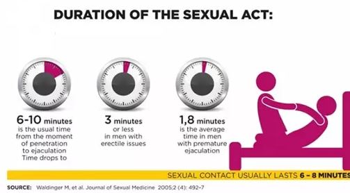 Rata-rata sekitar 45 persen pria berejakulasi dalam dua menit. Sementara itu, waktu yang ideal untuk mendapatkan kepuasan selama berhubungan intim maksimal adalah 7-13 menit saja. Bagaimana dengan Anda dan Pasangan..? Berapa menit Anda mampu bertahan..?